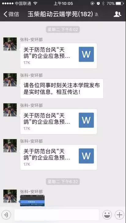 危难时刻,越是台风肆虐,越是可见玉柴船动的齐心协力,从上至下,从留守在公司的应急人员,到互相帮助、传递消息的同事们,玉柴船动在这一刻是一个完整的整体!