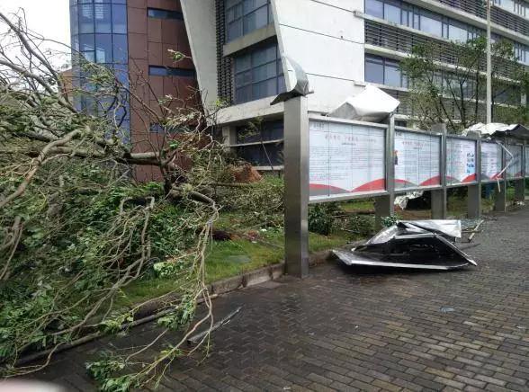 台风过境的短短几个小时之内,原本窗明几净、整齐干净的车间一片狼藉,厂区内树木连根拔起,让人十分心痛。还有办公楼、倒班楼的玻璃门窗,碎了一地。